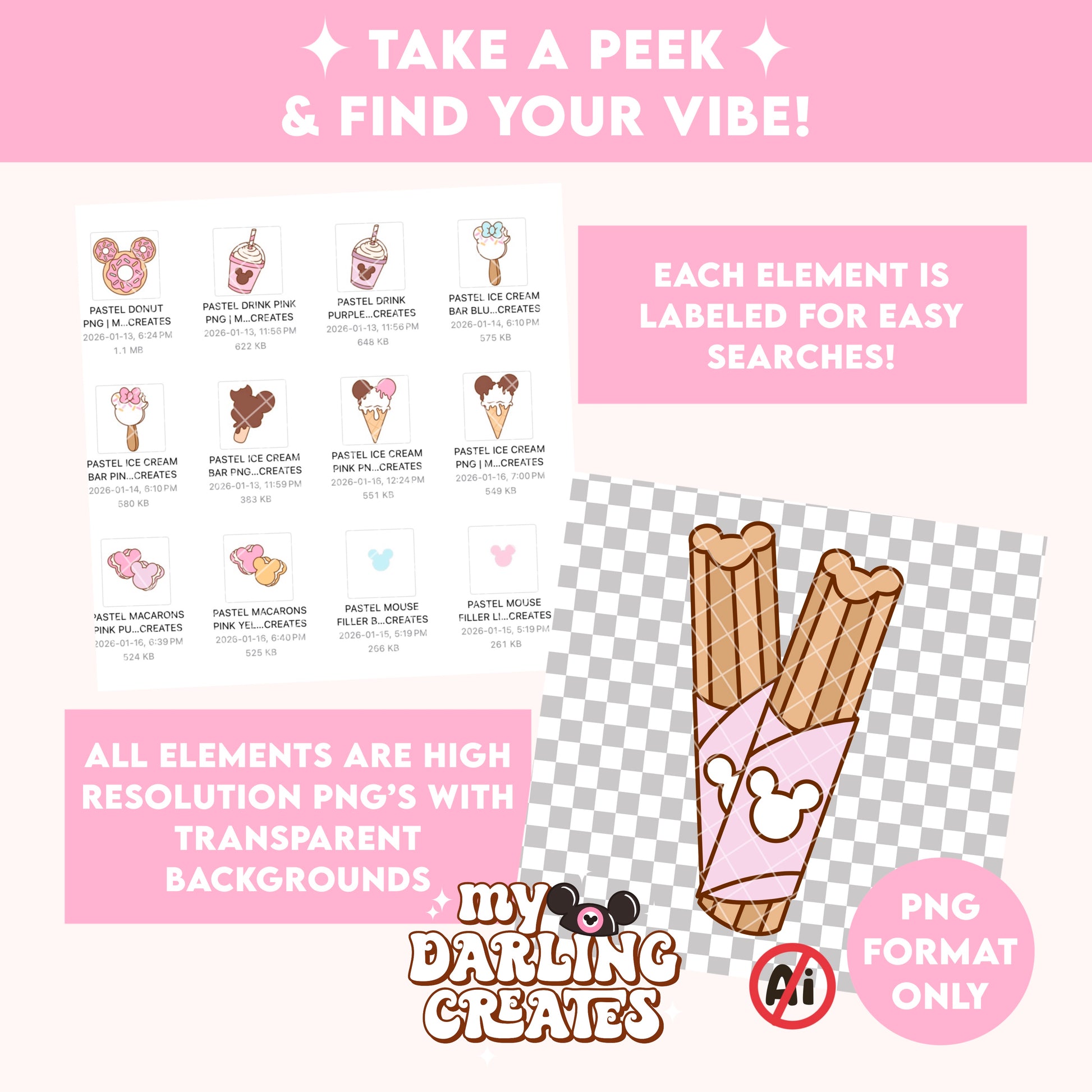 ✨ All your favourite magical park snacks like mouse waffle, ice cream bars, cotton candy, churros, pretzels, macarons and so much more!